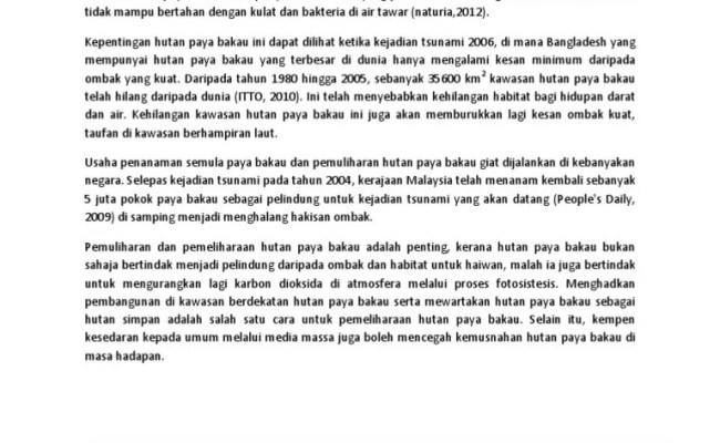 Jika kekurangan hutan/ pokok bakau menyebabkan gas karbon dioksida akan menjadi berlebihan . Contoh karangan kepentingan pokok bakau turut disediakan. Di negara brunei darussalam, kayu bakau digunakan hanya untuk kayu api, arang dan juga piling. Selain itu juga paya bakau yang terletak di kawasan di antara laut masin dan sungai air tawar mampu memberikan rasa payau dalam paya bakau itu . Pdf kepelbagaian fauna yang terdapat di hutan paya bakau sabah poster yang dibentangkan di .